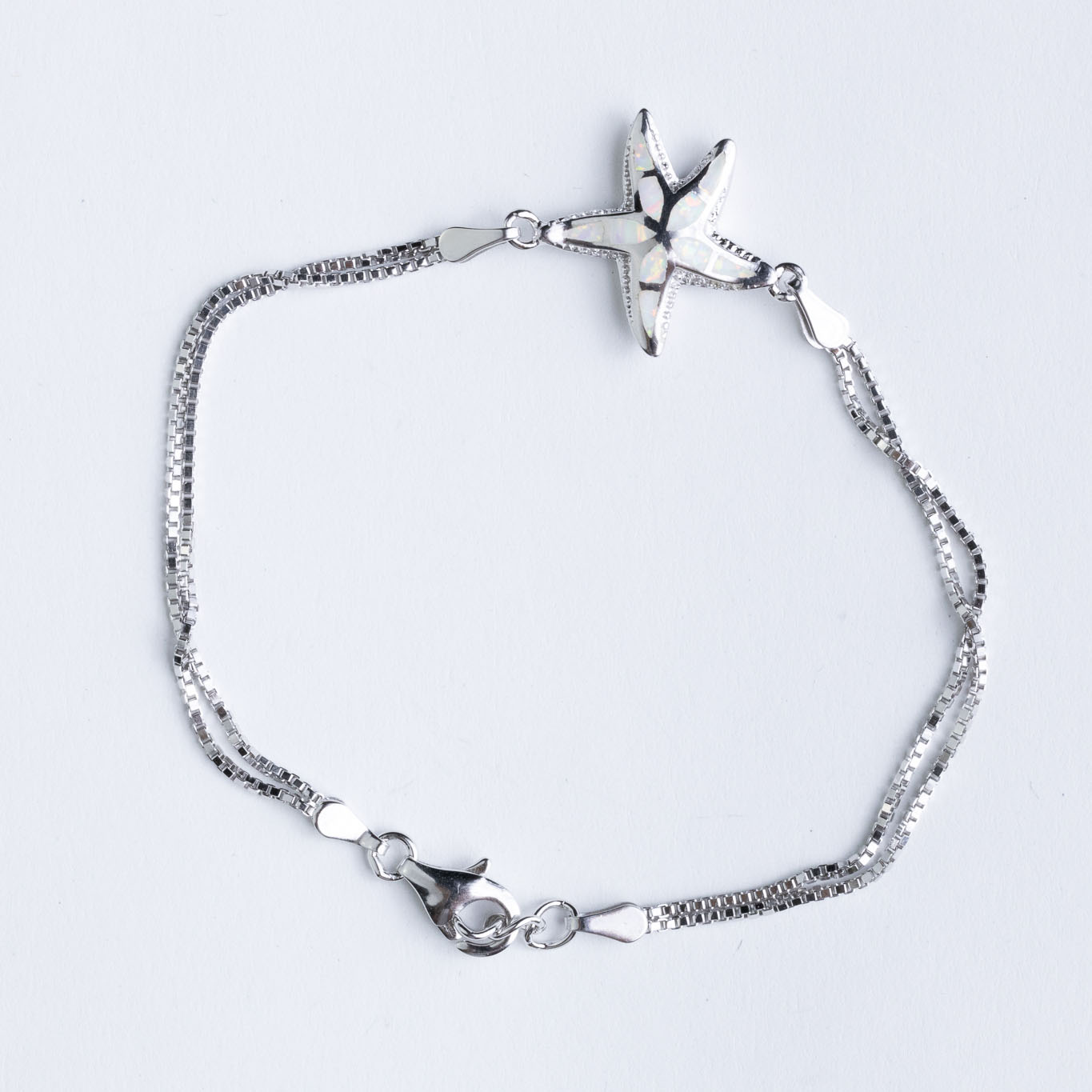 Silver bracelet with opal starfish and chain