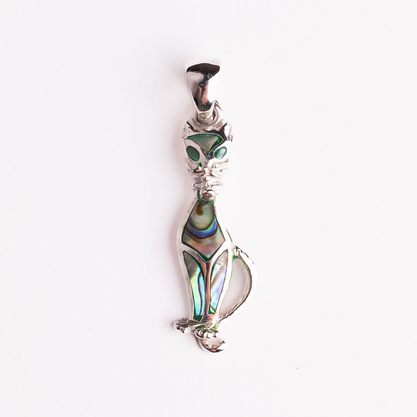 Silver pendant cat made of haliotis shell