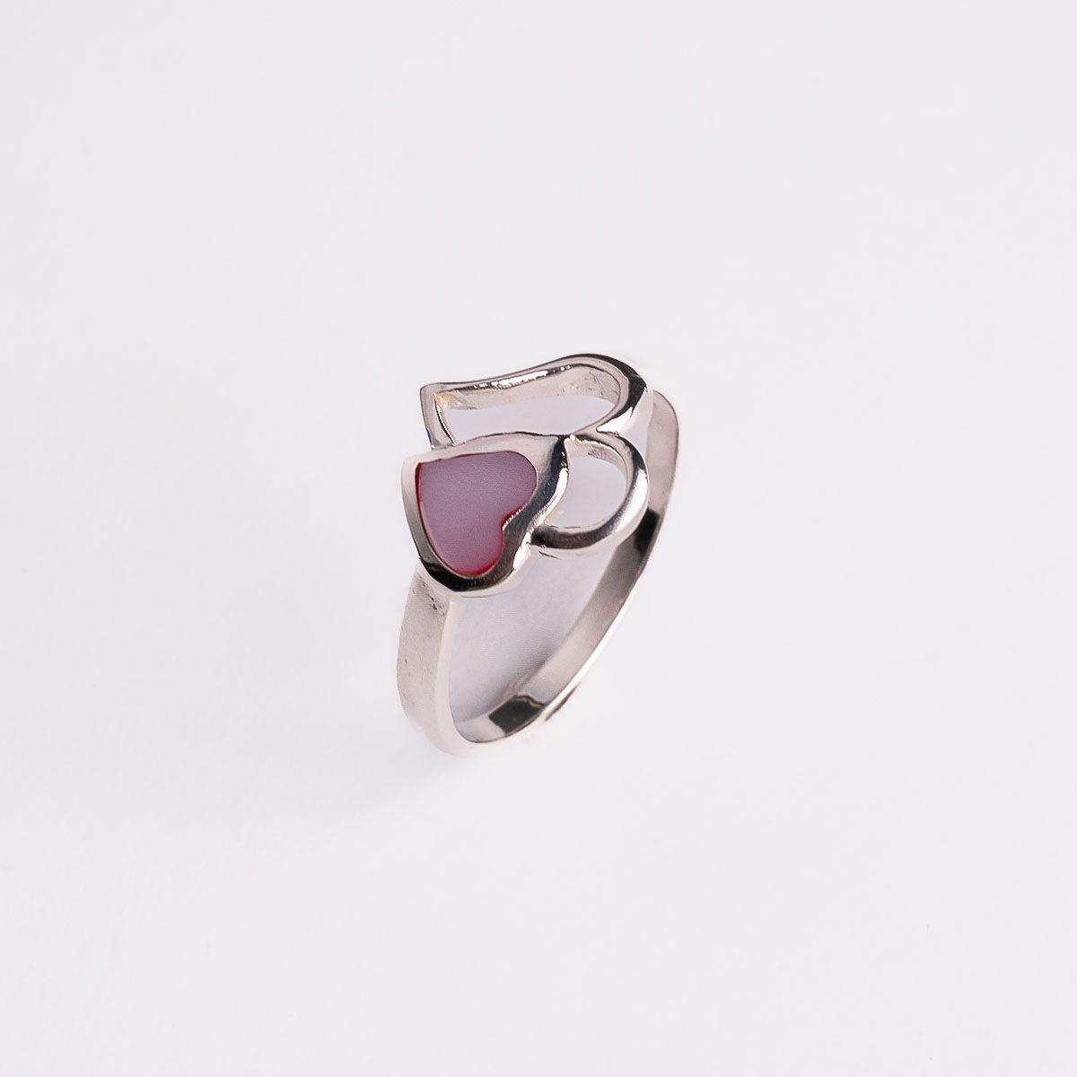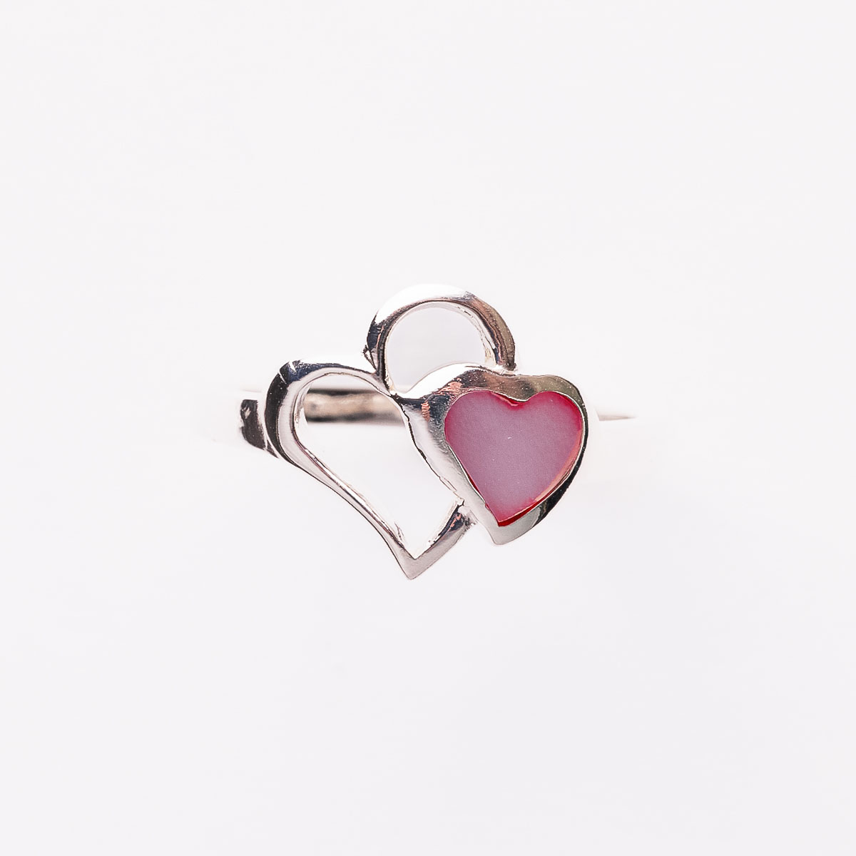 Silver Ring Two Hearts with pink mother of pearl