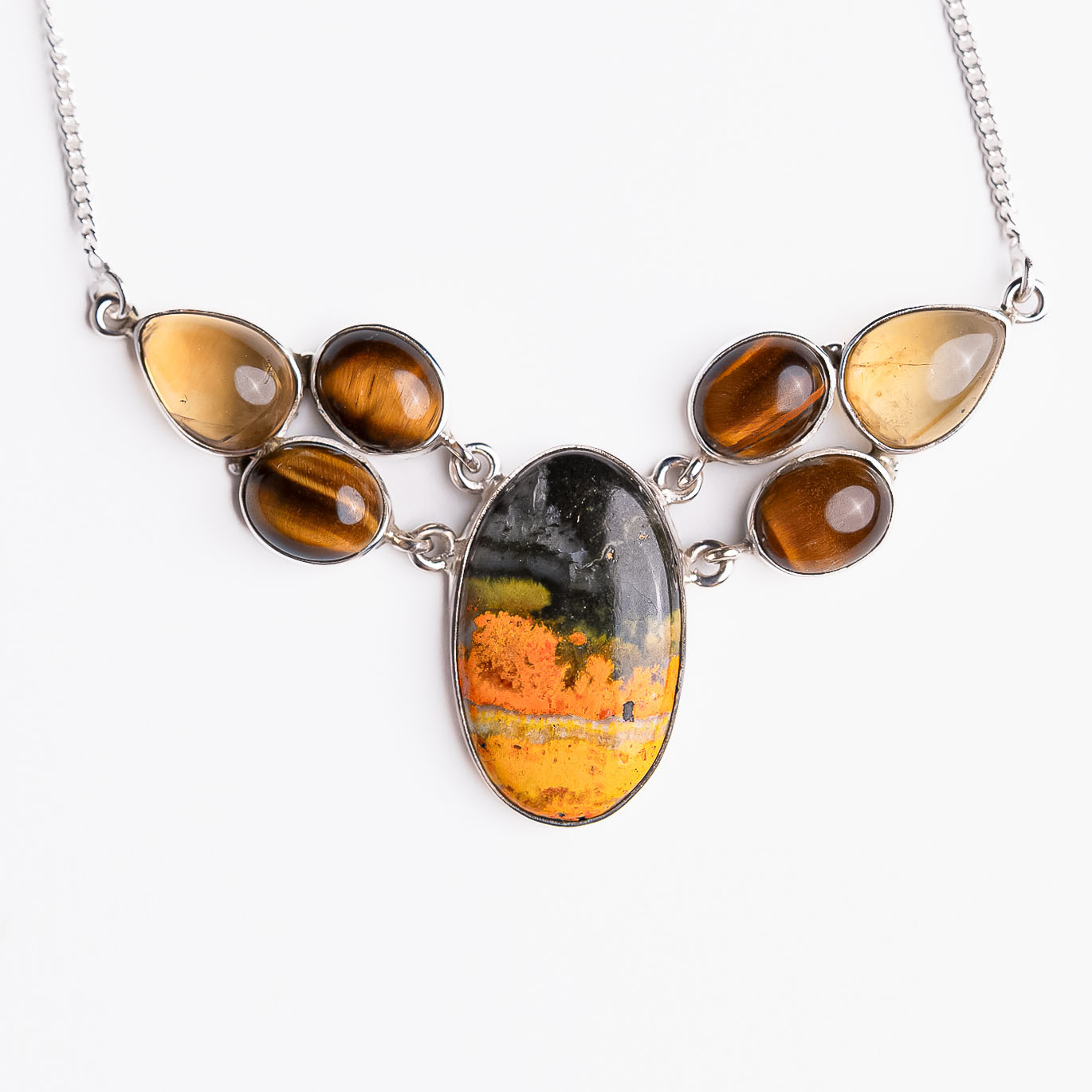 Srebrna ogrlica “Bumblebee jasper, tigrovo oko i citrin“