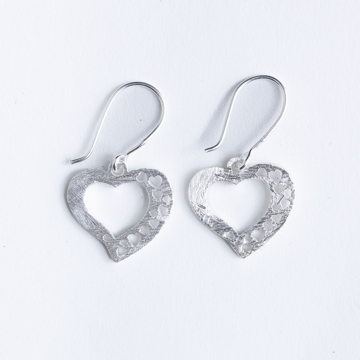 Srebrne naušnice viseća matirana srca, šuplja srca u rubu