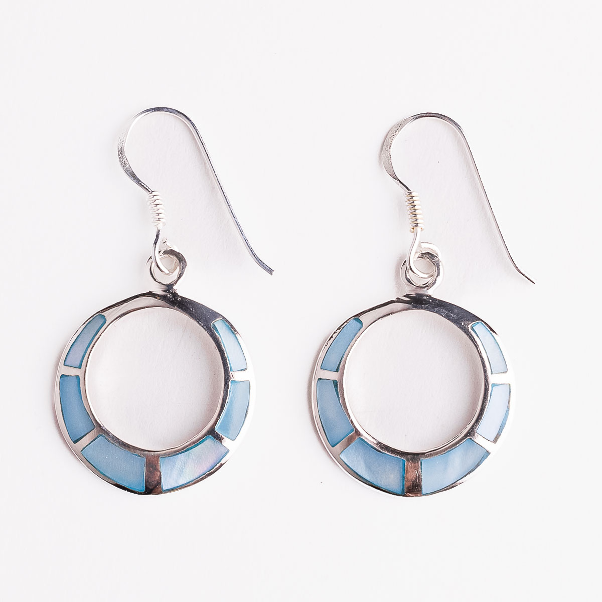 Viseće srebrne naušnice šuplji krugovi s plavim sedefom