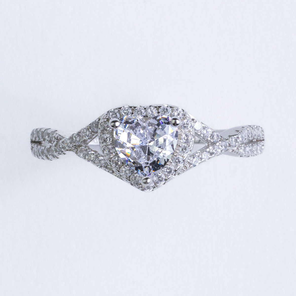 Srebrni prsten u obliku malog srca sa sitnim bijelim cirkonima