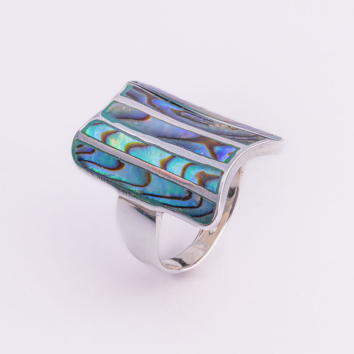 Srebrni prsten “Šuplja burma s raznobojnim sedefom”